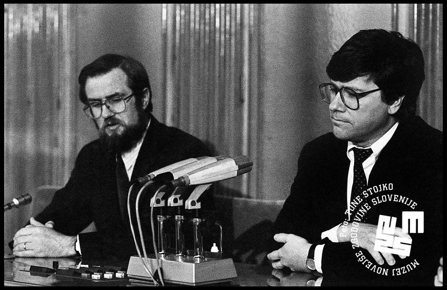 Jeffrey Sachs (na fotografiji z Lojzetom Peterletom aprila 1991) je slovenski vladi svetoval pri oblikovanju lastninske zakonodaje. | Avtor Tone Stojko, hrani: Muzej novejše zgodovine Slovenije