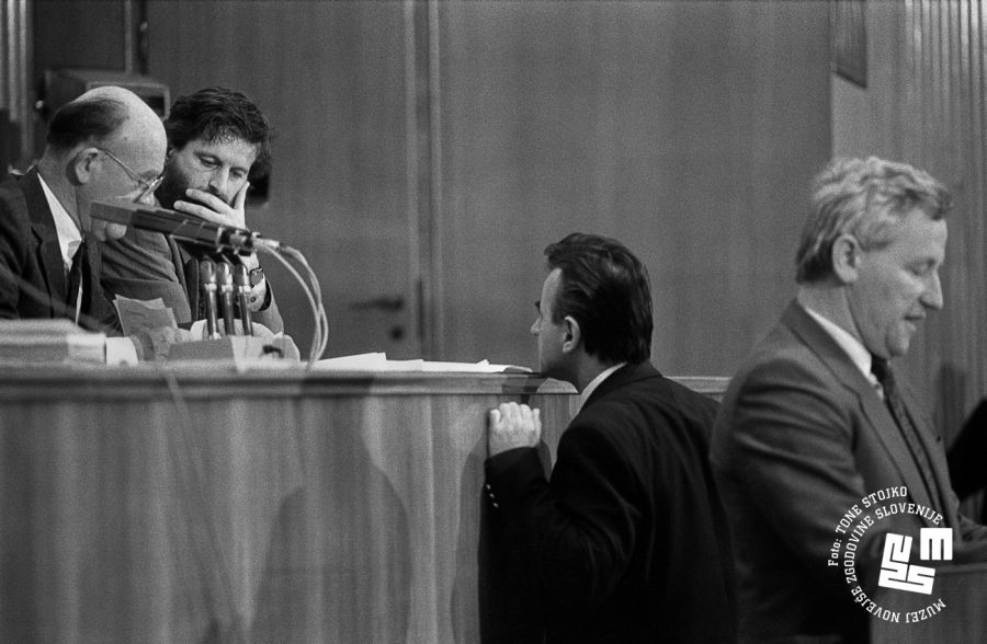 12. september je zaznamovalo nadaljevanje skupščinske razprave o privatizacijski zakonodaji. | Avtor Tone Stojko, hrani: Muzej novejše zgodovine Slovenije