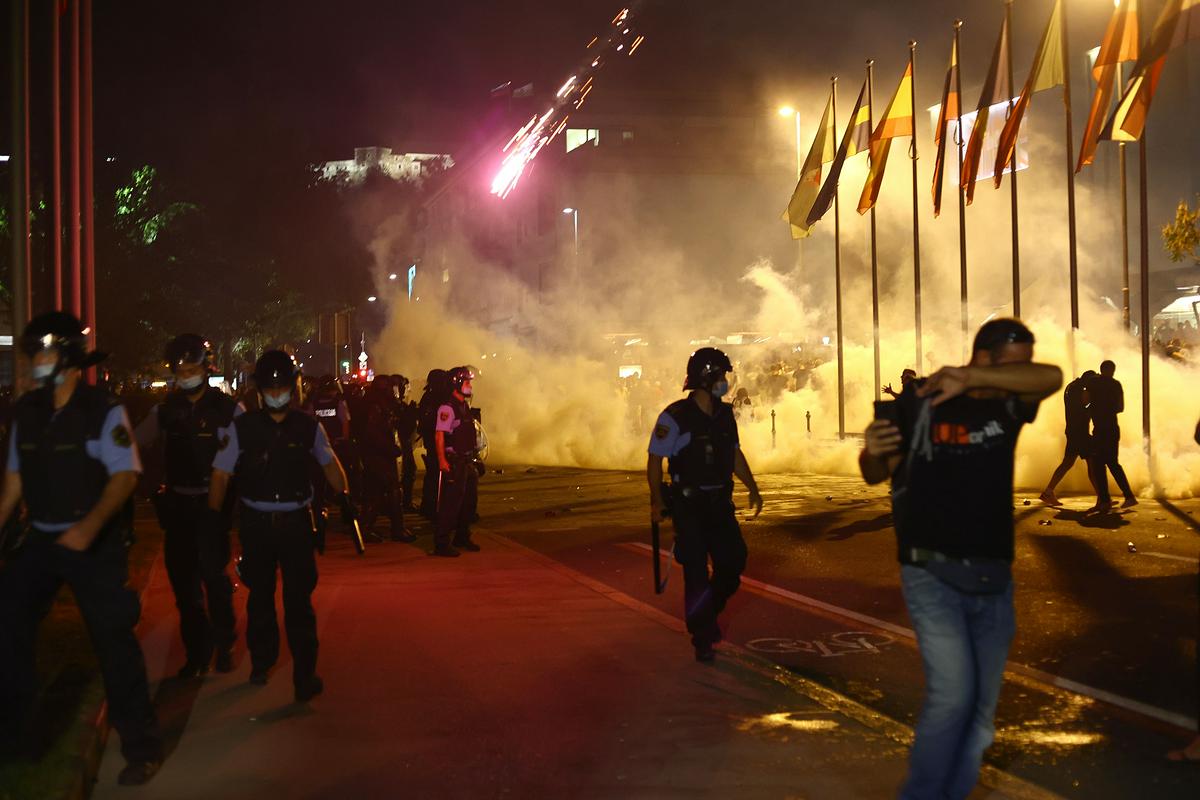 Utrinek sinočnjega vandalizma horde covid idiotov, v katero so se pomešali levičarski anarhisti, kriminalci in radikalizirani islamisti.