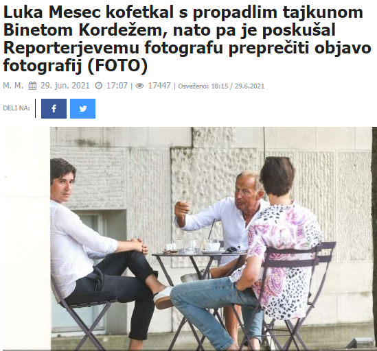 Luka Mesec in Bine Kordež na kavi. (Foto: Posnetek zaslona- Reporter)