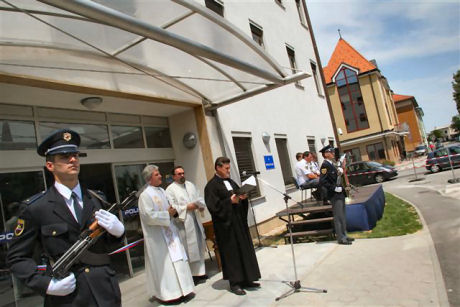 Tudi blagoslov takratnega evangeličanskega škofa Geze Erniša ni odgnal slabe "karme" stavbe PP in PPP Foto: Štefan Abraham, policija.si