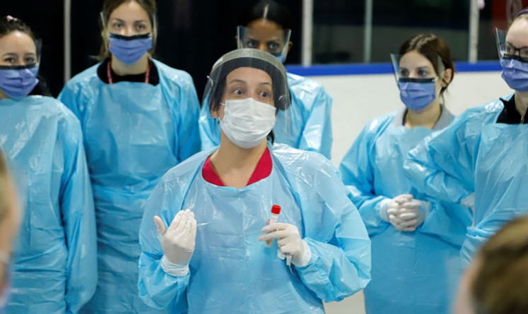 Kanadski javni zdravstveni delavci. Kanada je za vse javne uslužbence, zaposlene v vojski zahteva, da se vsi cepijo do 29. oktobra 2021. (Foto: Posnetek zaslona- Al Jazzera, Reuters)