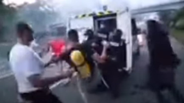 Fizični napad protestnikov na policiste. (Foto: Posnetek zaslona, Youtube, Demokracija, David Volk)