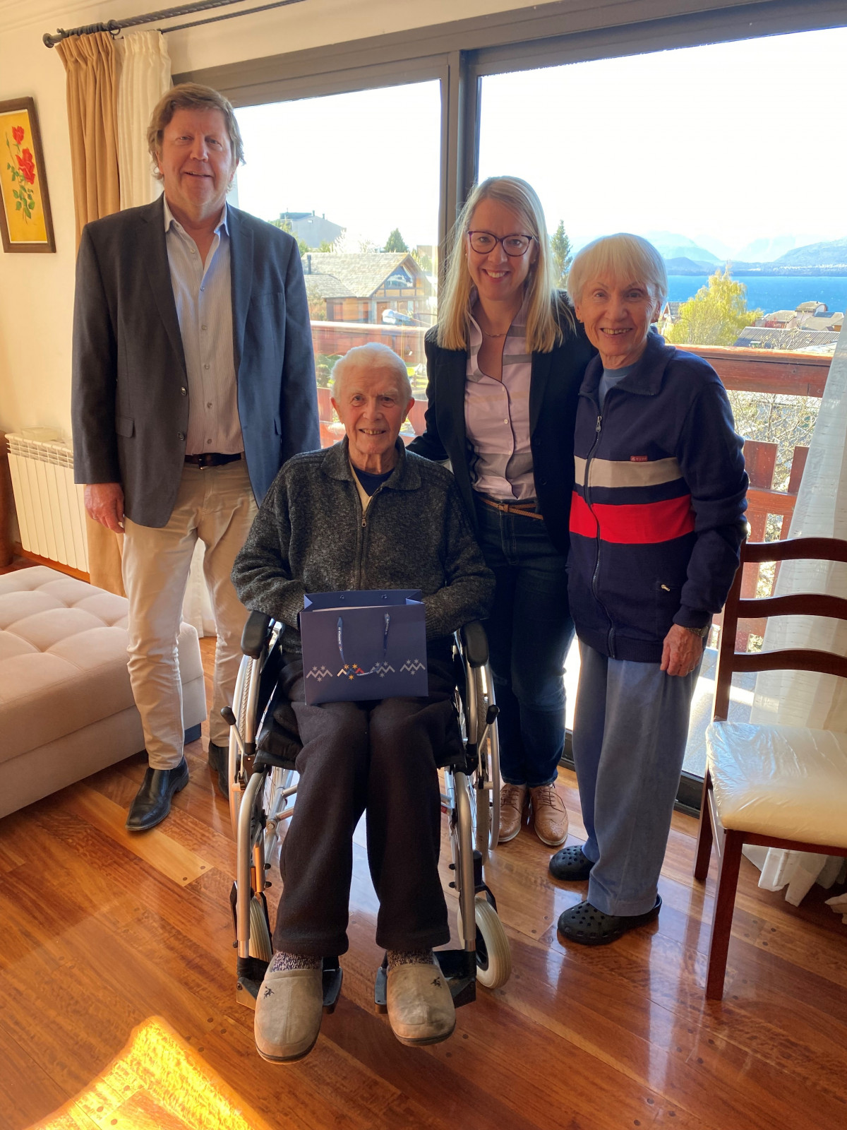 Slovenski častni konzul v Bariločah Robert A. Eiletz in ministrica Jaklitscheva sta obiskala tudi Dinka Bertonclja in njegovo soprogo Romano. Dinko Bertoncelj je bil prvi Slovenec na Himalaji