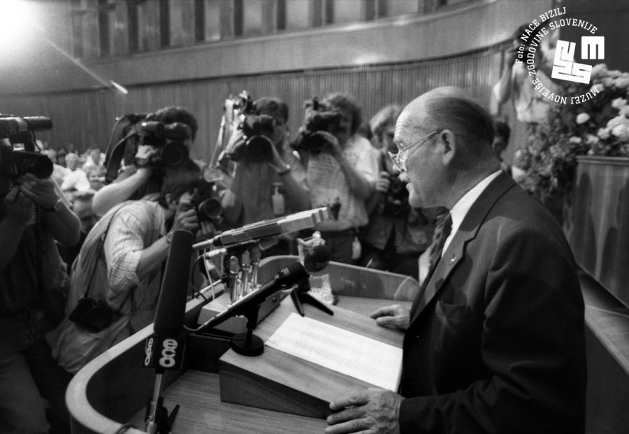 Predsednik parlamenta je dejal, da bo novo slovensko ustavo mogoče sprejeti pred koncem leta. | Avtor Tone Stojko, hrani: Muzej novejše zgodovine Slovenije