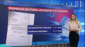 Irena Joveva predstavi, kako so Socialni demokrati zamenjali svoj datum ustanovitve iz leta 1990 v leto 1920. Generalni sekretar stranke SD Dejan Levanič je zanikal, da ni tukaj nobene spornosti v prispevku, saj so se morali po zakonu leta 1990 sami znova registrirati kot politična stranka. (Foto: Posnetek zaslona- Dejstva na 24ur/POP TV)