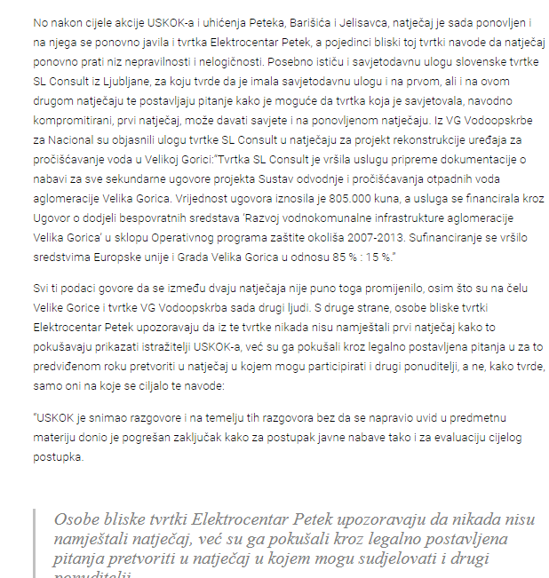 Razkritje hrvaških novinarskih kolegov Nacioanala vplenost podjetja SL-Consult v delni lasti Mirjana Poljaka v aferi Velika Gorica na Hrvaškem. (Foto: Posnetek zaslona- Nacional)