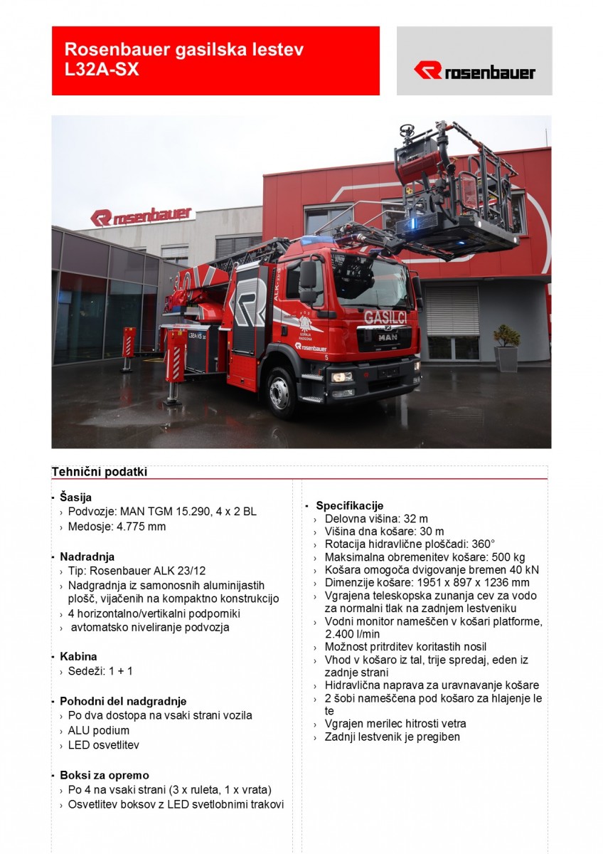 Tehnični podatki za novo vozilo avtolestev