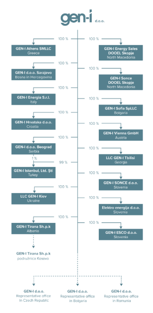 Lastniška sestava podjetja Gen-I. Kot vidite, imajo šestnajst podjetij v tujini. (Foto: Posnetek zaslona-GEN-I)