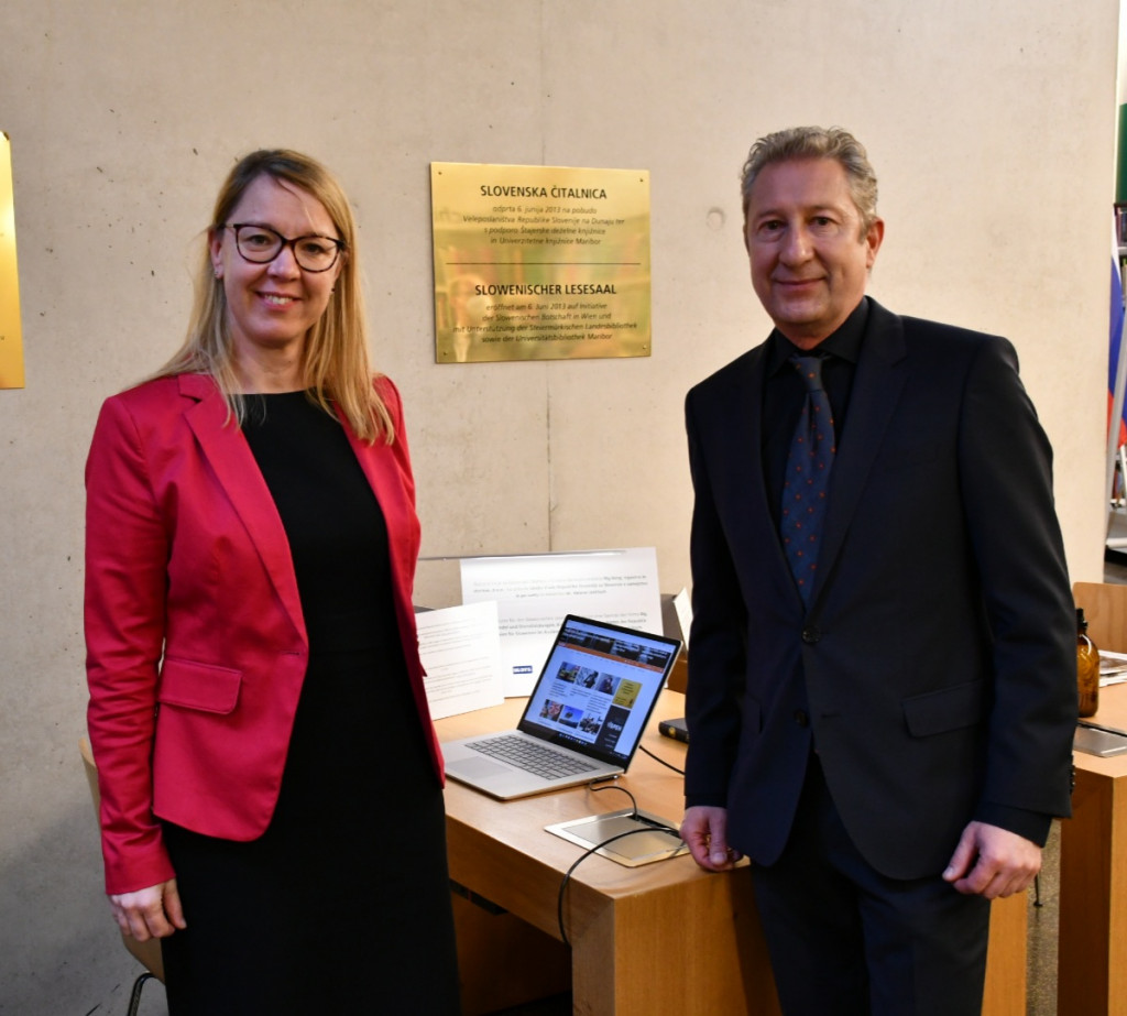 Obisk Slovenske čitalnice v Štajerski deželni knjižnici, kjer je ministrico sprejel namestnik direktorice mag. Markus Kostajnsek