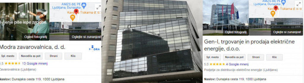 Stavba sedežev podjetij Modra zavarovalnica in GEN-I na Dunajski cesti 119 v Ljubljani. (Foto: Posnetek zaslona- Google maps, Google)