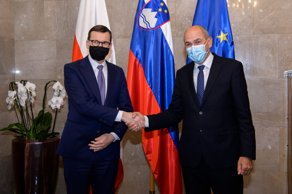 Predsednik vlade Janez Janša je danes na delovnem kosilu gostil poljskega predsednika vlade Mateusza Morawieckega