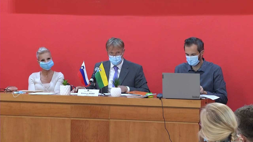 Na 3. izredni seji OGR desno ob županu Rojku odvetnica Renata Jakič, odvetniška pisarna Drozdek Foto zaslon TV AS