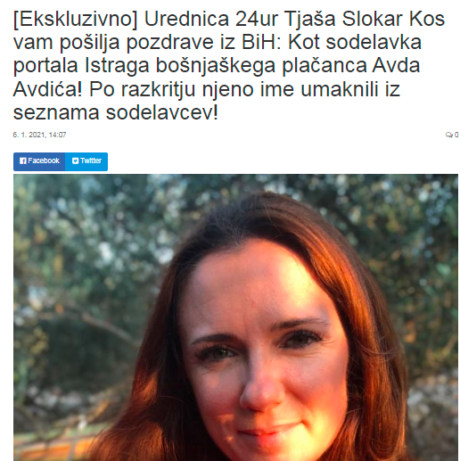 Prav preko Mehmedagića je bosanski novinar Avdo Avdić izvažal umetne afere z Bosne, Tjaša Slokar pa jih je povzemala. (Foto. Posnetek zaslona- Nova24tv)