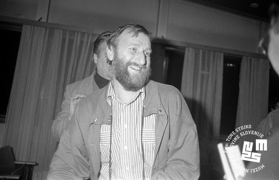 Predsednik Zelenih Slovenije in član slovenskega predsedstva dr. Dušan Plut je na skupščini vnovič kandidiral in si zagotovil novi mandat. | Avtor Tone Stojko, hrani: Muzej novejše zgodovine Slovenije