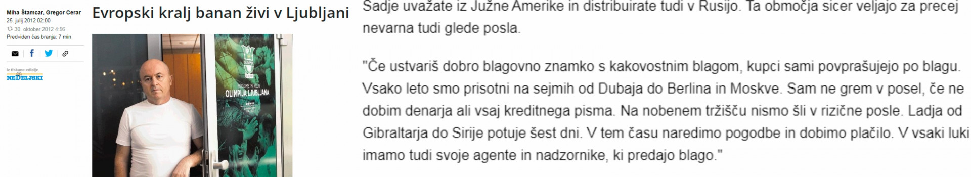 Izet Rastoder v intervjuju za Nedeljski dnevnik v letu 2012 izjavi, da njegovi agentje in nadzorniki predajo blago v vsaki luki, v kateri deluje. Zakaj se potem znajdejo "velikokrat" kilogrami kokaina v škatlah banan Rastoderjevega podjetja Derby? (Foto: Posnetek zaslona- Dnevnik, Nedeljski)