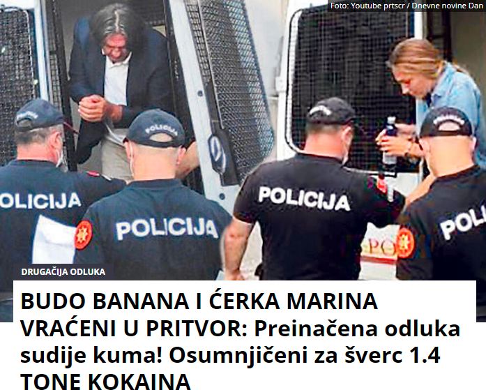 Naslovnica ob aretaciji Budimirja Krstovića in Marine Krstović kot osumljenca zasežene pošiljke 1,4 tone kokaina v črnogorskem pristanišču Bar. (Foto: Posnetek zaslona- Kurir)