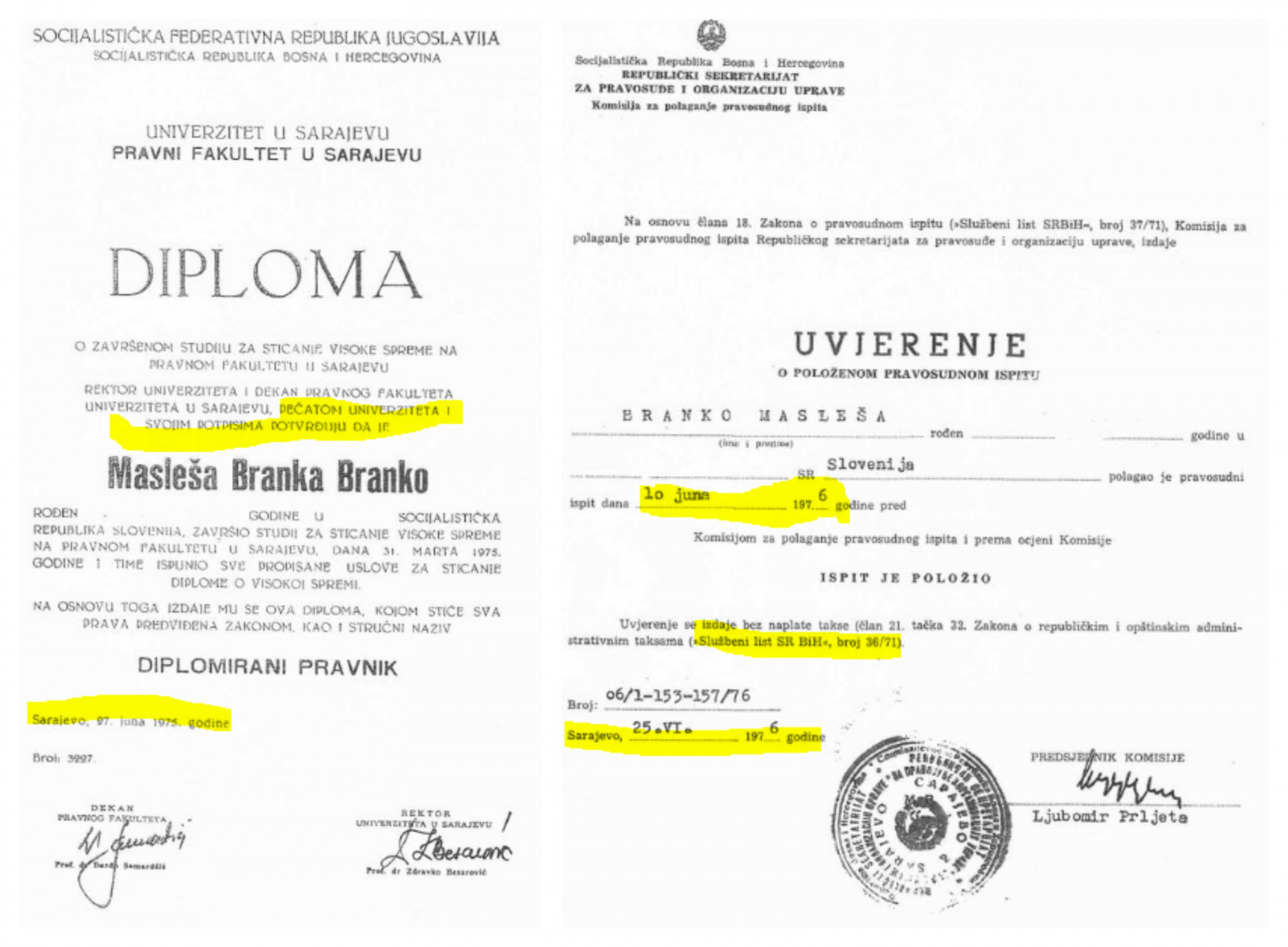 Niti po najbolj ohlapnih pogojih Branko Masleša sodeč po diplomi in potrdilo o pravosodnem izpitu ni opravil leto dni pripravništva. Za to mu je zmanjkalo 17 dni! (Foto: Posnetek zaslona- Siol)