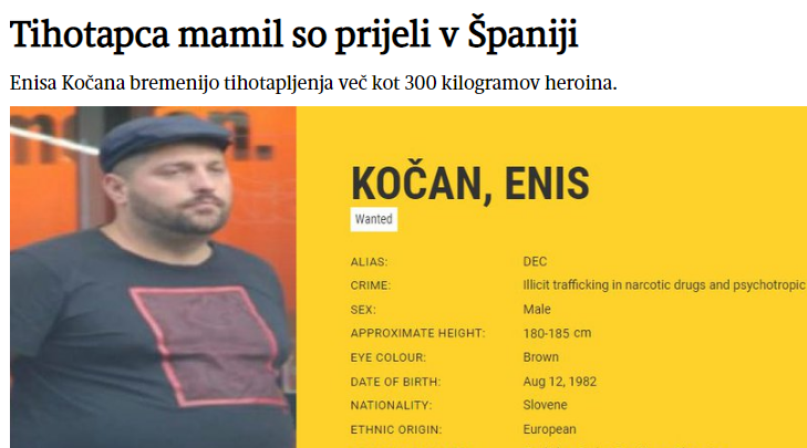 Enisa Kočana so aretirali v Španiji. (Foto: Posnetek zaslona- Delo)