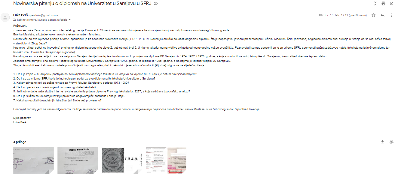 Ali bo Univerza v Sarajevu odgovorila na naša vprašanja ter razčistila vse dvome o Masleševi diplomi?
