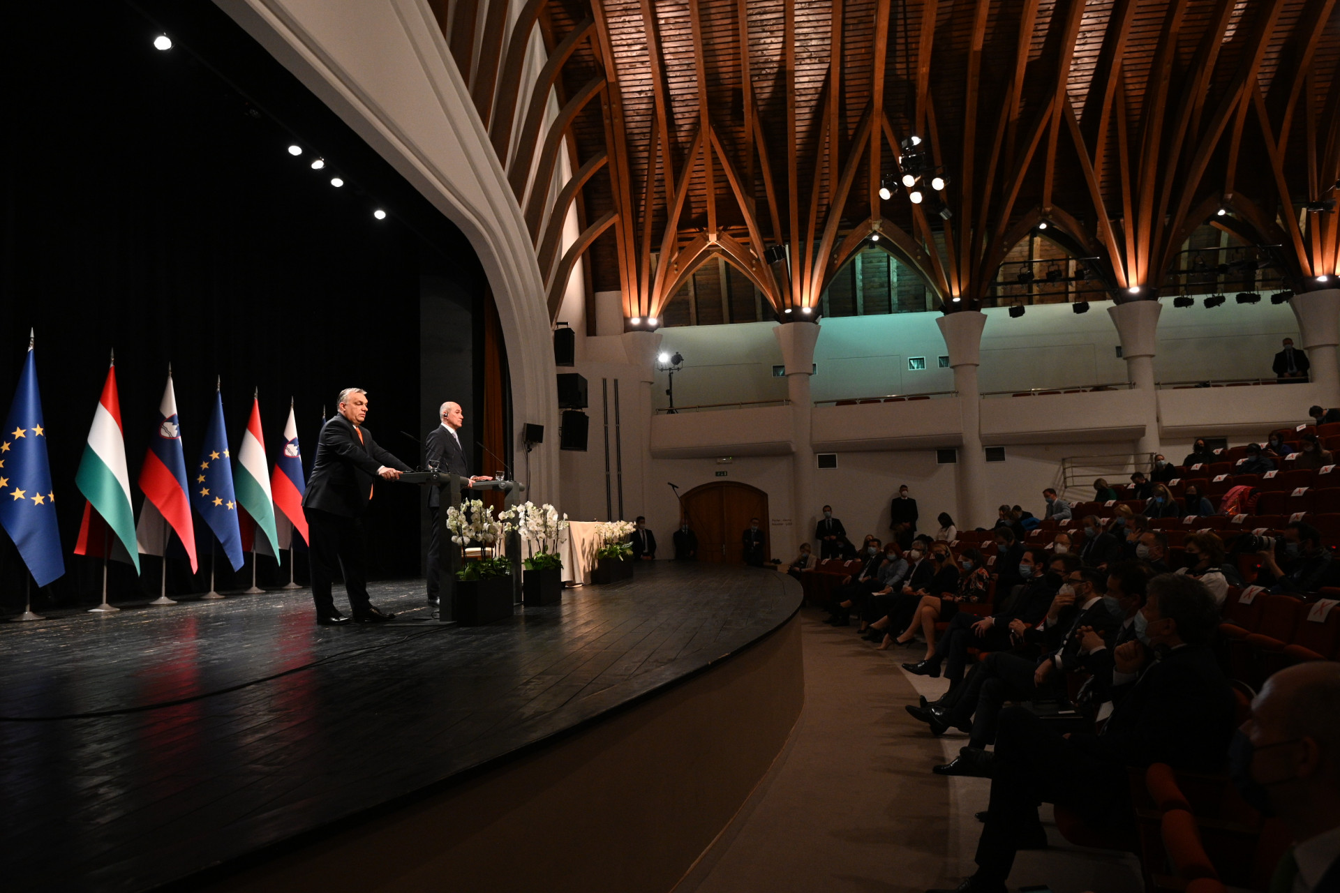 Tiskovna konferenca obeh predsednikov vlad, Janše in Orbana, foto KPV