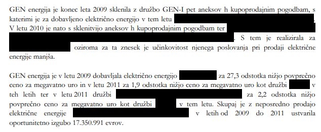 Del revizije računskega sodišča o poslovanju GEN-EL z električno energijo. Vse kaže, tudi Računsko sodišče RS ni smelo pokazati vseh podatkov o GEN. Ali se bo doseglo s pomočjo informacijske pooblaščenke? (Foto: Revizija Računskega sodišča z naslovom Smotrnost poslovanja GEN energije, d. o. o.,) Krško pri prodaji električne energije