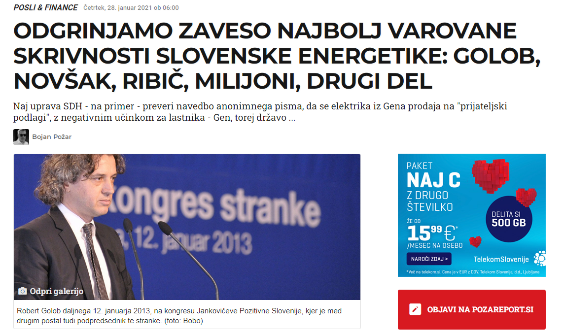 V tem članku so se razkrile poslovne nepravilnosti s strani GEN-EL. (Foto: Posnetek zaslona- Požareport)