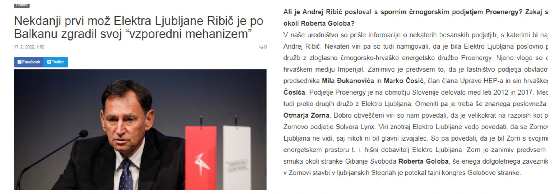 Ali je Elektro Ljubljana Andreja Ribiča poslovala s podjetjem Proenergy? (Foto: Posnetek zaslona- Nova24tv)