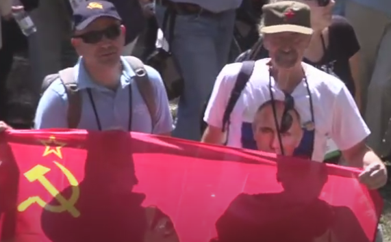 Tudi na Vršiču so se zbirali ljubitelji Sovjetske zveze in Vladimira Putina. (Foto: Posnetek zaslona- Youtube)