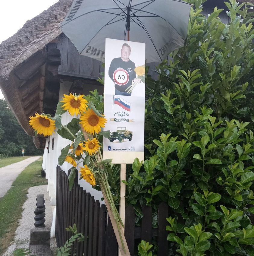 Tako so bili gostje Jevškove 60 letnice dočakani v Filovskem gaju. Menda sta bili na fešti obe, žena in ljubica?