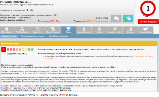 Bonitetna ocena podjetja Proming v lasti Franca Lenharta. (Foto: E-bonitete, Nova24tv)
