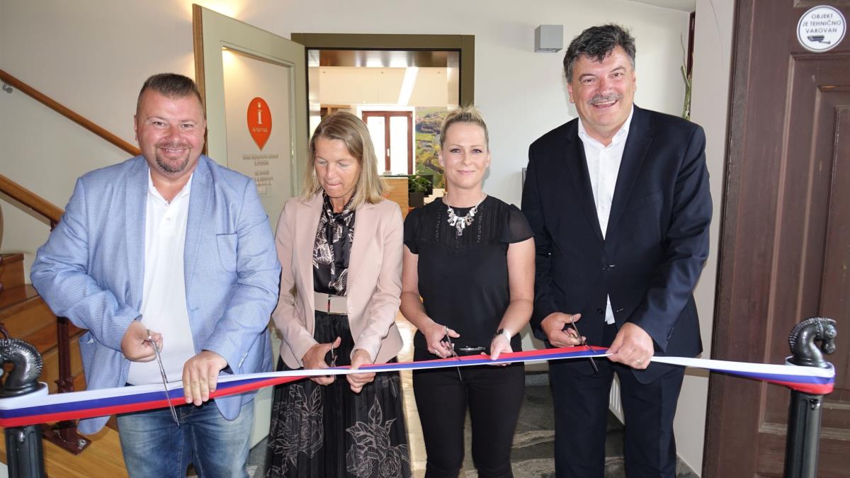 Dušan Hočevar (prvi z leve), Petra Zakrajšek (druga z desne). Foto: Posnetek zaslona- Občina Grosuplje