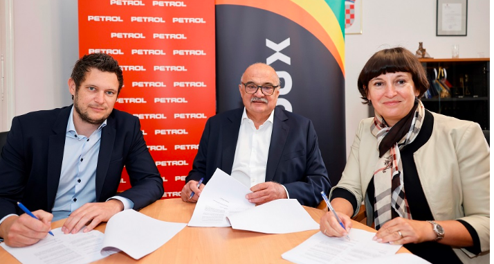 Podpis pogodbe med Petrolom in Croduxom. (Foto: Posnetek zaslona- Petrol)