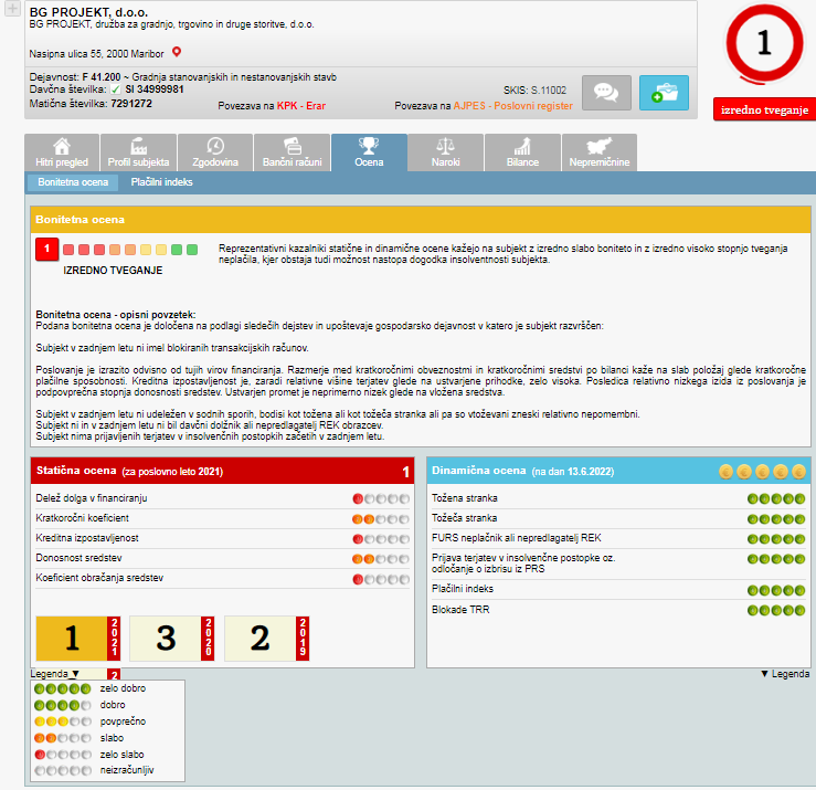Posnetek zaslona- E-bonitete