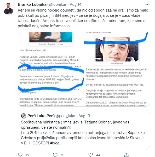 Zavajajoč in manipulativen odgovor državnega sekretarja na MNZ dr. Branka Lobnikarja. (Foto: Twitter)