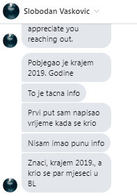 Odgovor bosanskega raziskovalnega novinarja Slobodana Vaskovića, da je črnogorski kriminalec Ivan Mijatović pobegnil iz Slovenije v letu 2019. Generalna direktorica policije je bila sedanja ministrica za notranje zadeve mag. Tatjana Bobnar. (Foto: Luka Perš)