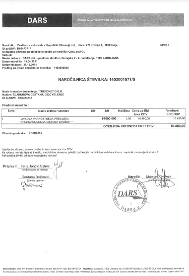 Naročilnica za sklenjeni posel podjetja TrendNET. (Foto: Bralec Prava.si)