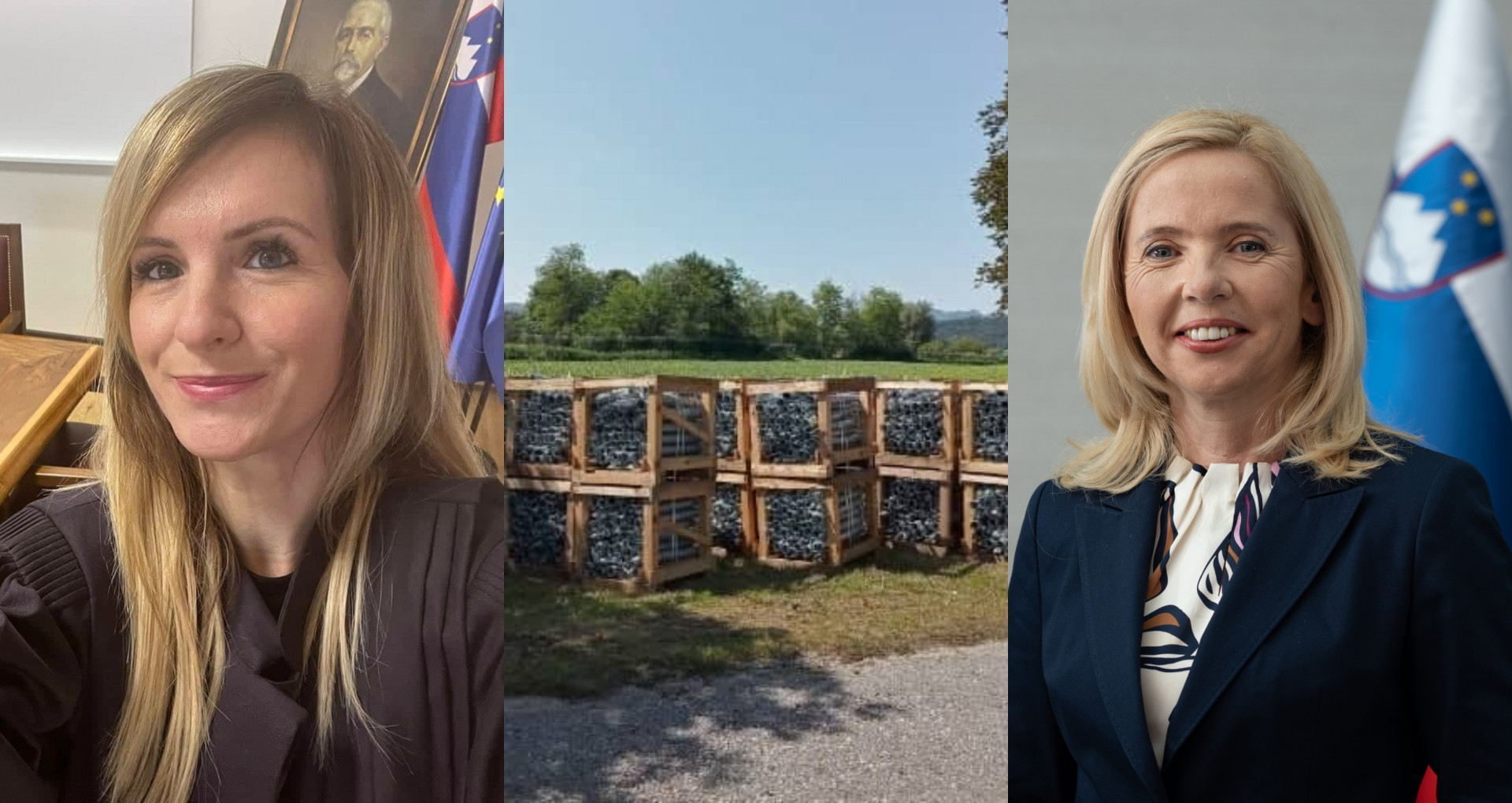 Odvetnica družbe Maxi Bau Nina Bojovič, dobavljen material in ministrica za notranje zadeve mag. Tatjana Bobnar. (Foto: Osebni arhiv Nina Bojovič, Maxi Bau in Vlada RS)