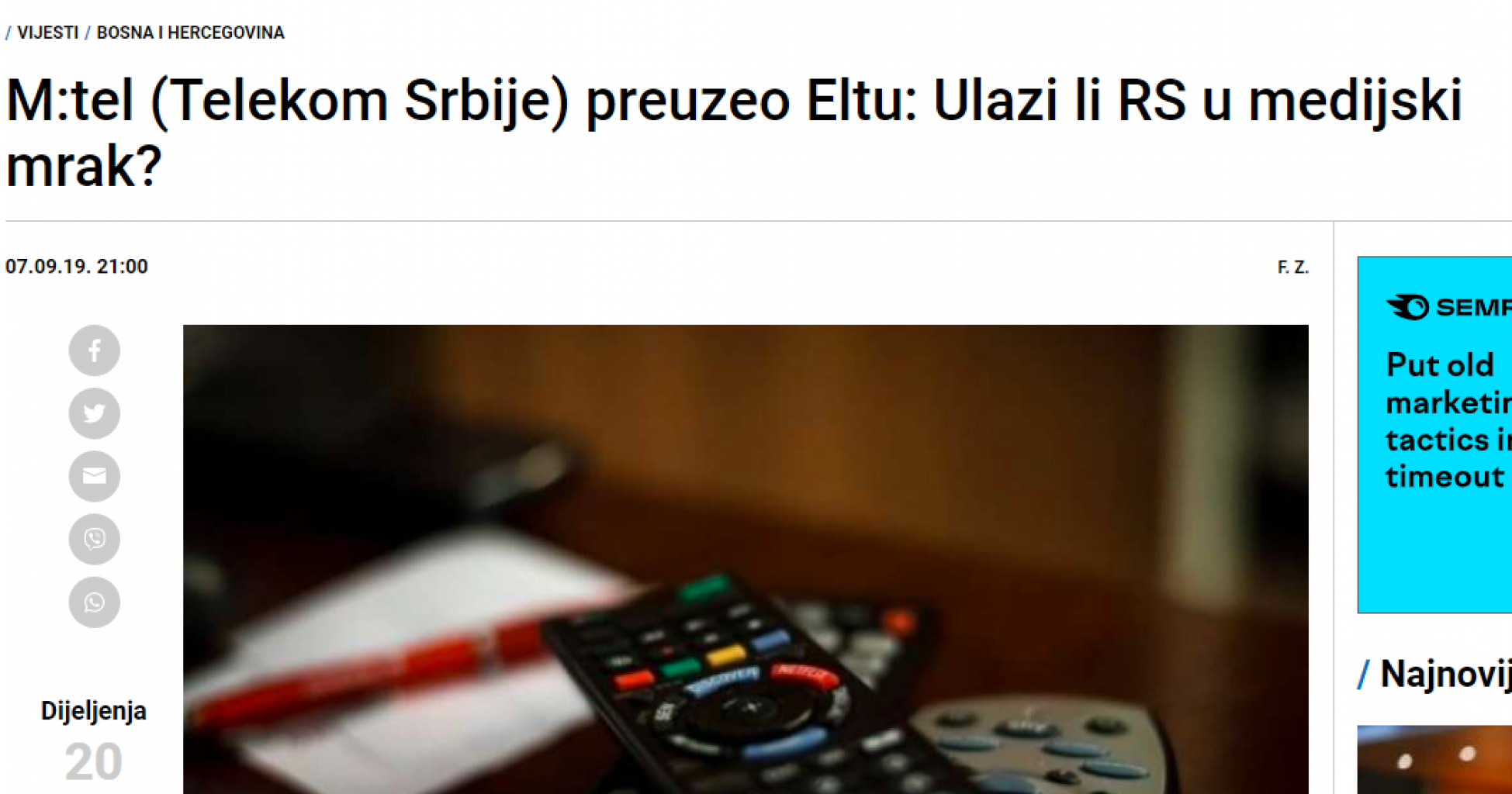 Foto: Posnetek zaslona Radio Bosna