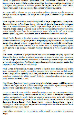 Foto: Pismo anonimne nekdanje sodelavke mame mariborskega župana Saše Arsenovića.