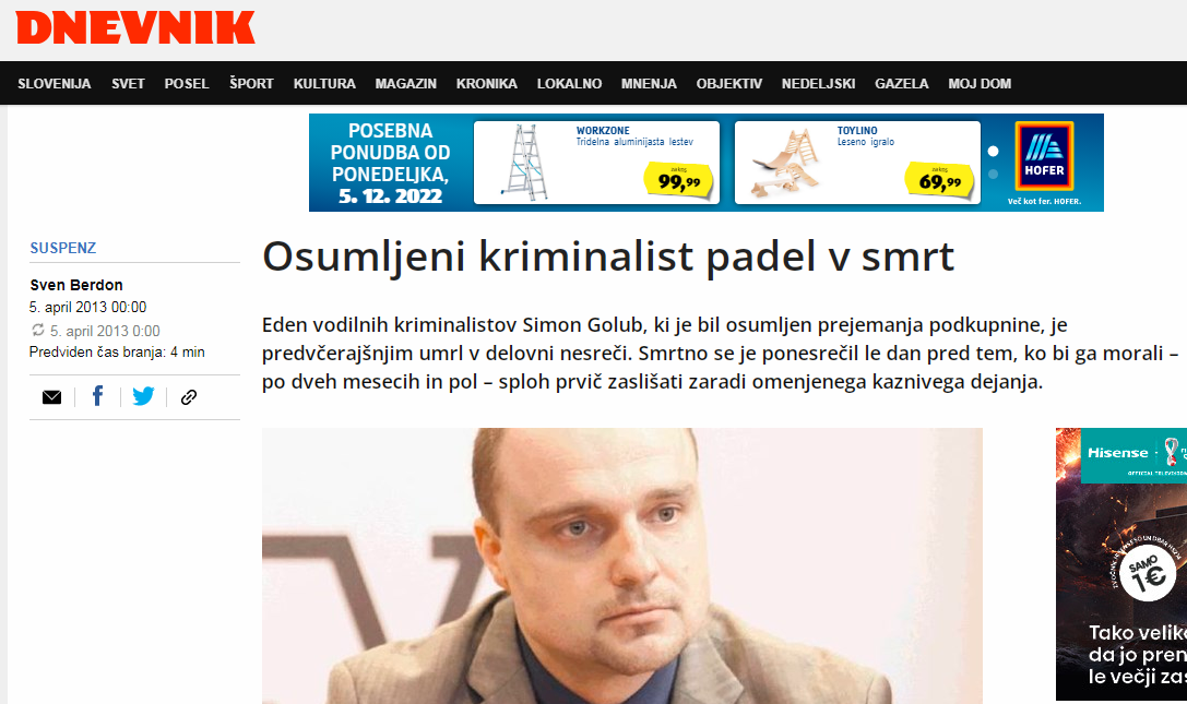 Tudi kriminalist Simon Golub je umrl v "delovni nesreči."(Foto: Posnetek zaslona-Dnevnik)