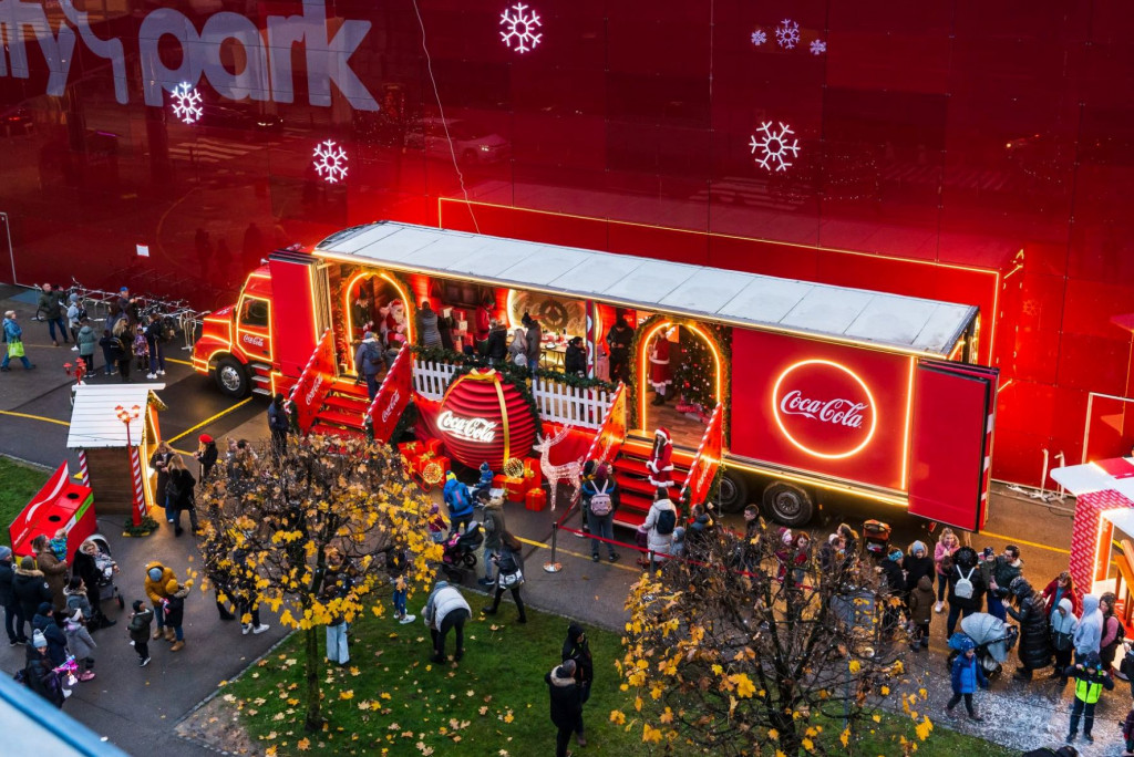 Na svoji poti čez Evropo se je pred Cityparkom ustavil bleščeči in znameniti Coca-Cola tovornjak. (Foto Robert Krumpak)