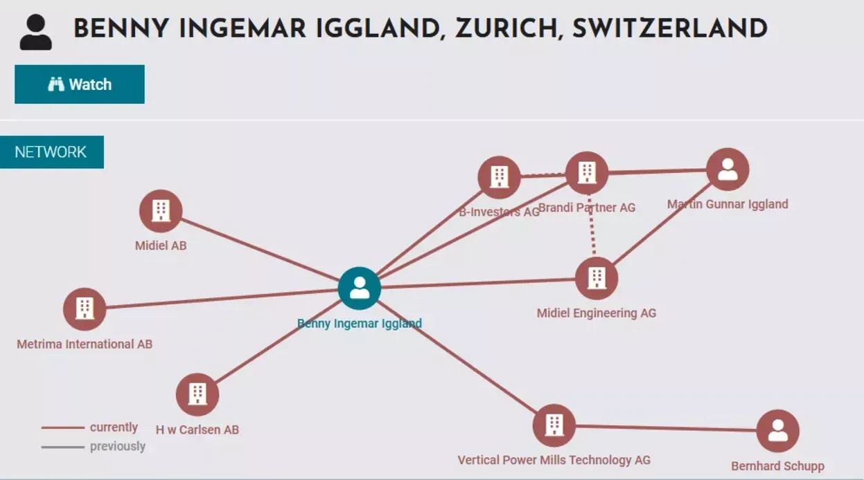 Poslovna mreža švicarskega državljana Bennyja Ingemara Igglanda, največjega posamičnega lastnika paradržavne družbe Stelkom. (Foto: Posnetek zaslona-Northdata)