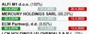 Delni lastniki Merkurja so v preteklosti bili tudi v podjetju ECM Partnerji, v katerem kot izvršni direktorji delujejo Aleš Škoberne, Dejan Rajbar in Andrej Prah. (Foto: Posnetek zaslona- E-bonitete)
