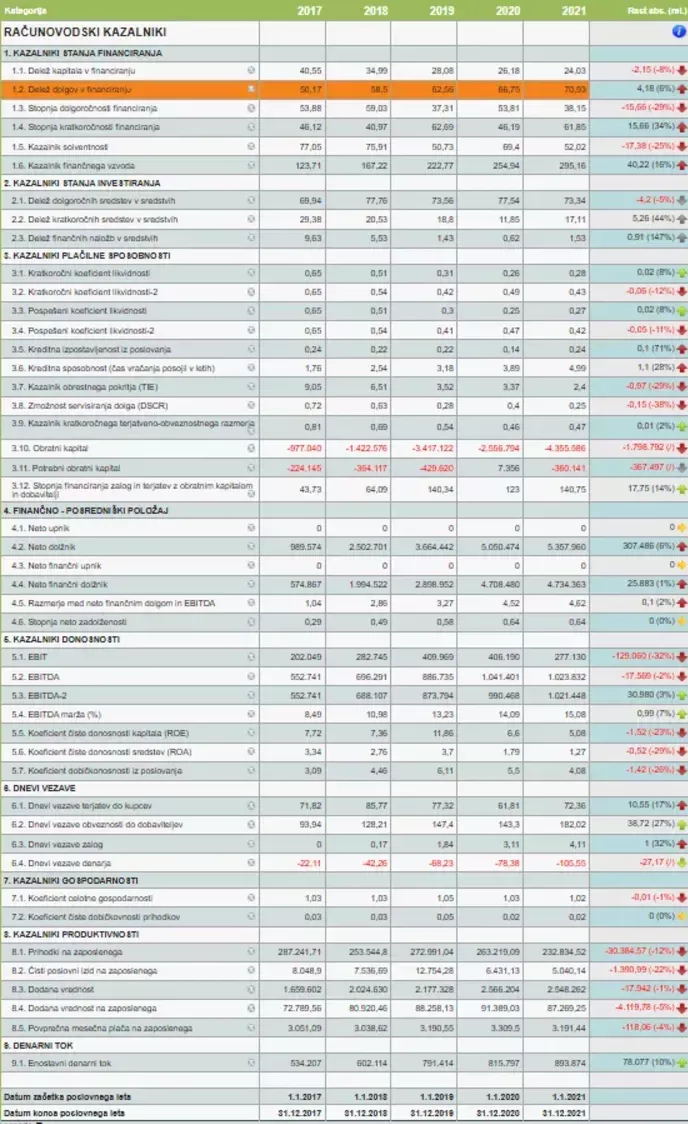 Računovodski kazalniki družbe Stelkom v letih 2017-2021. (Foto: Posnetek zaslona- E-bonitete)
