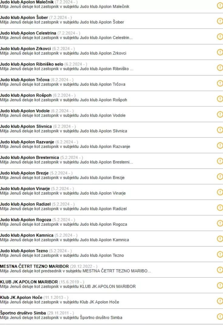 Mitja Jenuš je v začetku februarja 2024 ustanovil kar 28 judo klubov. Po podatkih sodeč lahko sklepamo, da je ustanovil 28 "hčerinskih društev" pod svojim Judo klubom Apolon. (Foto: Posnetek zaslona-Ebonitete.si)