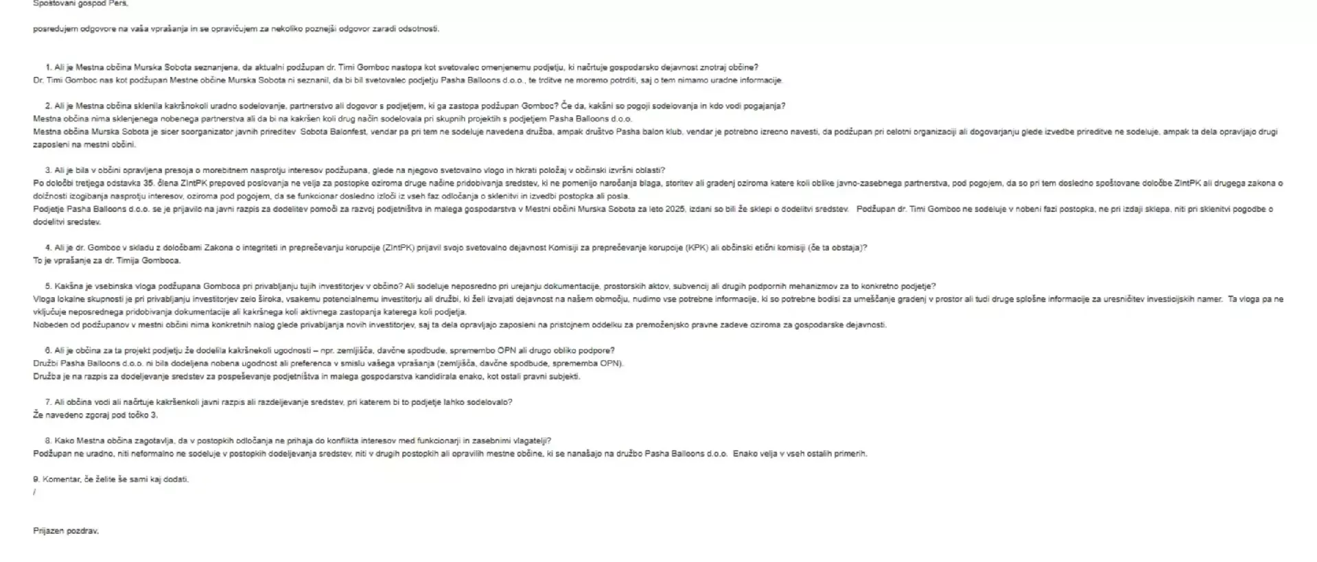 Odgovori Mestne občine Murska Sobota v primeru nepoklicnega podžupana Timija Gomboca. (Foto: Luka Perš)