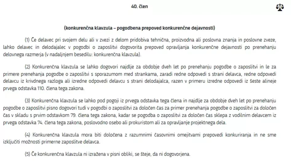 40. člen Zakona o delovnih razmerjih. (Foto: Posnetek zaslona-Pirsrs.)