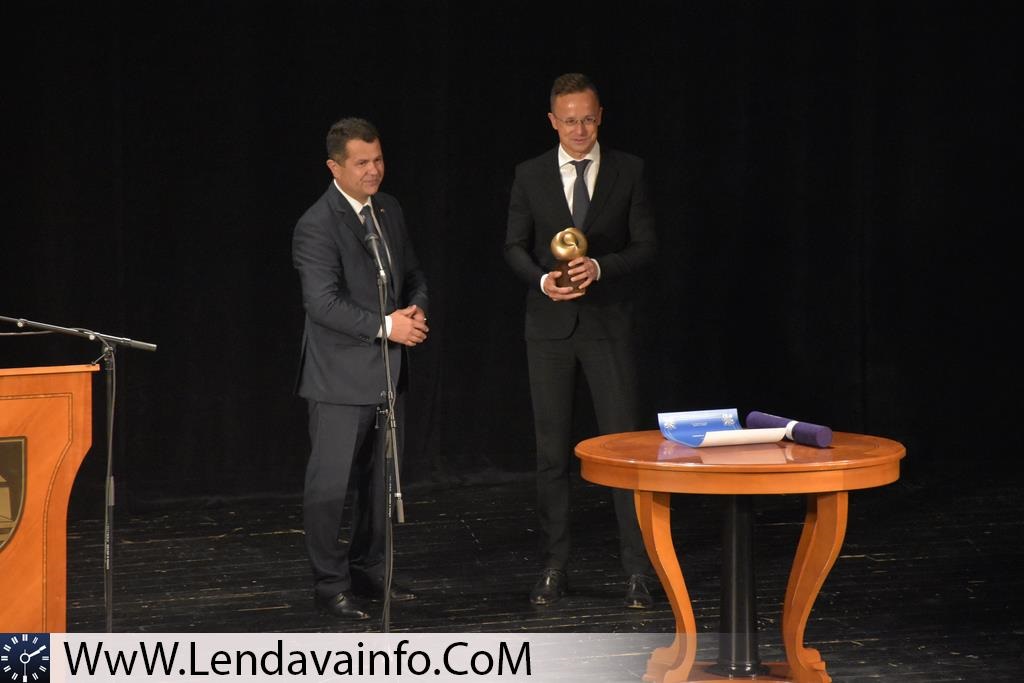 Na prigodni slovesnosti v Gledališki in koncertni dvorani so madžarskemu zunanjemu ministru Pétru Szijjártu izročili naziv častnega občana Občine Lendava.