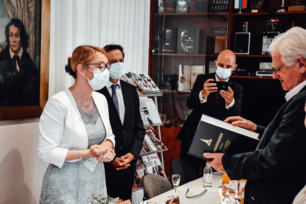 Ministrica dr. Jaklitsch se je v dopoldanskem delu srečala s predsednikom društva Slovenski dom Zagreb Darkom Šoncem ter člani upravnega odbora društva. V pogovoru, ki je potekal v prijetnem vzdušju, so spregovorili o lanskoletnem potresu, ki je poškodoval tudi društvene prostore, tako da je bila potrebna njihova sanacija. Velika želja društva je tudi, da bi prostori društva postali njihovi. Slovenski dom v Zagrebu namreč domuje v centru mesta, kar omogoča njihovo večjo prepoznavnost, pa tudi dostopnost. Tako kot drugod je bilo tudi tu v času pandemije srečevanje članov omejeno. Kljub temu jim je uspelo izdati več številk njihovega glasila Novi odmevi, ki prinaša novice o njihovem delu, pomembnih Slovencih na Hrvaškem ter druge zanimive vsebine, česar so bili zelo veseli. Ministrica je člane spodbudila tudi k iskanju načinov, s katerimi bi bolj uspešno pritegnili v društveno življenje tudi mlade. Ob zaključku srečanja se je ministrica dr. Jaklitsch zahvalila vsem prisotnim in pohvalila delo slovenske skupnosti v Zagrebu.